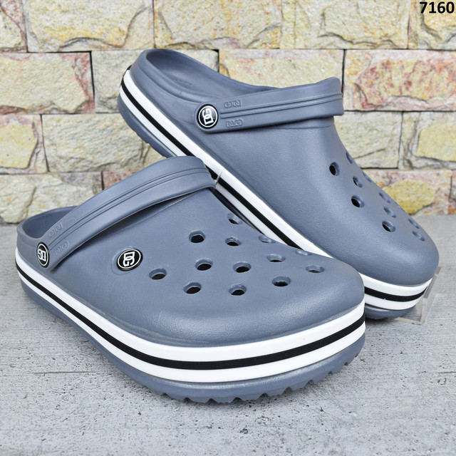 Сабо крокси чоловічі сірі з білими смужками Dago Stylе